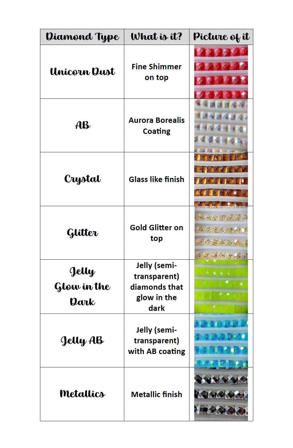 Cette liste est pour 5x sacs de diamants spéciaux de 6g (1000 diamants par paquet).