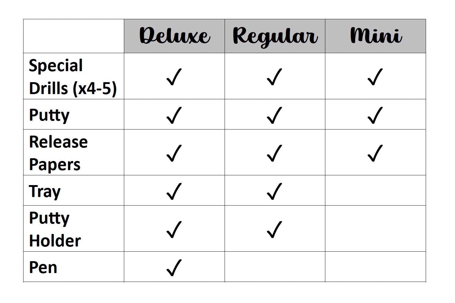 - 4-5 special drills packs (6 g each, approx 1000 diamonds). It contains a variety of SQUARE drills. It can be :